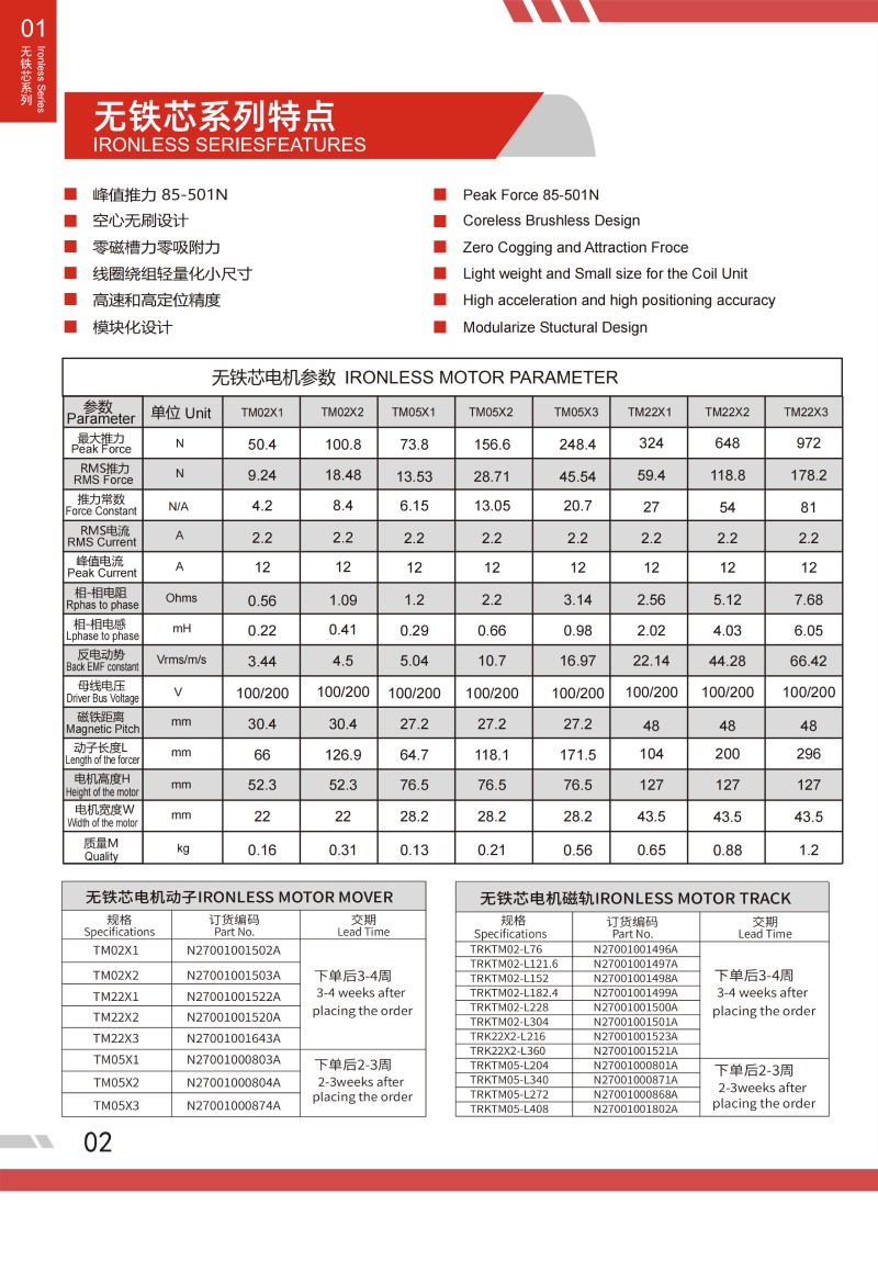 | 無(wú)鐵芯直線電機(jī)參數(shù)IRON LESS MOTOR PARAMETER | |||||||||