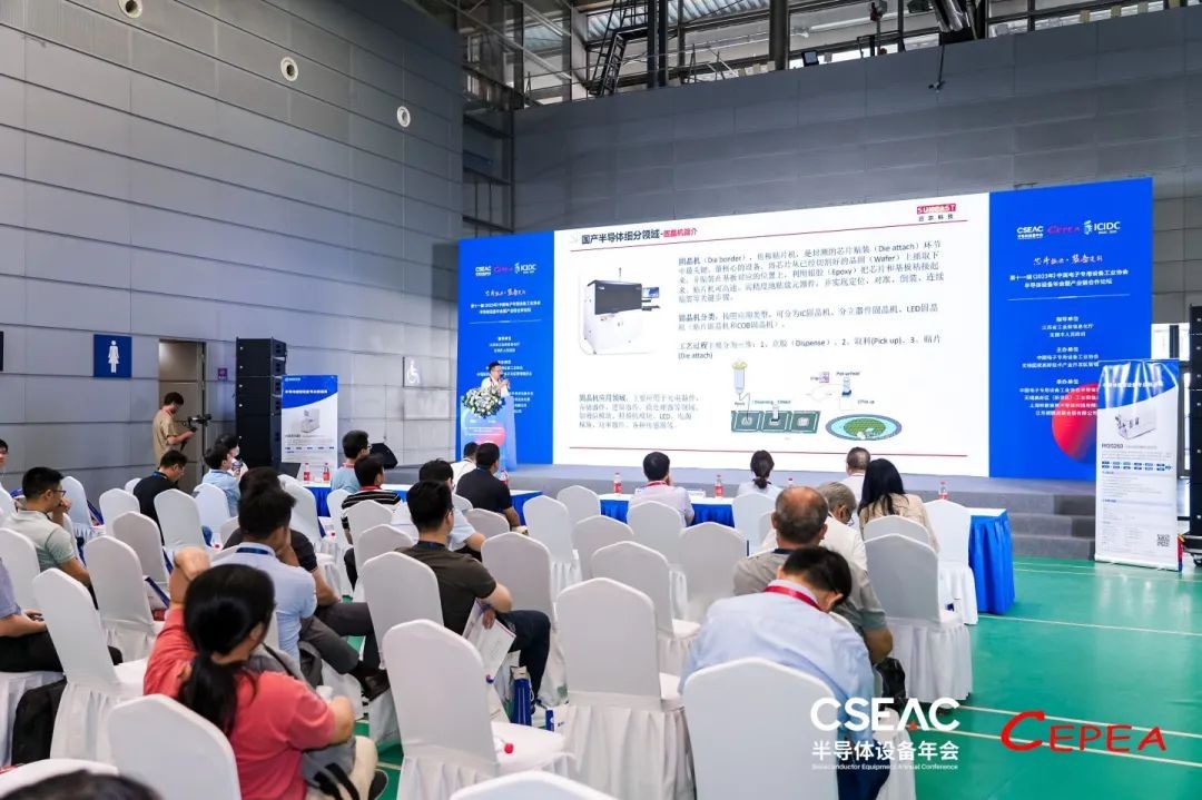 在大會的“新品發(fā)布”專場,日東科技研發(fā)經(jīng)理王永剛,現(xiàn)場發(fā)布了新款半導(dǎo)體封裝設(shè)備“IC貼合機(jī)WBD2200 PLUS,并與觀眾分享了半導(dǎo)體封裝設(shè)備的行業(yè)背景、國產(chǎn)化發(fā)展現(xiàn)狀。