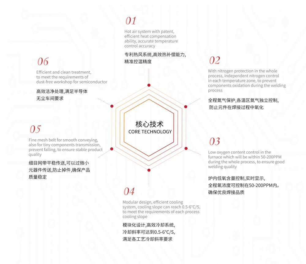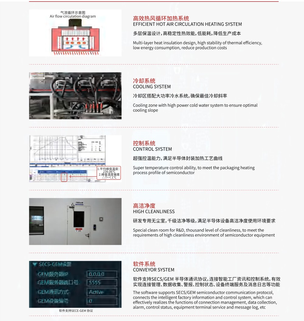 1、 專利熱風(fēng)系統(tǒng),高效熱補償能力,精準(zhǔn)控溫精度;