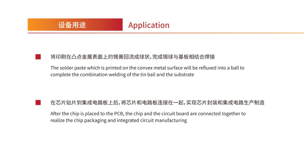 1、將印刷在凸點金屬表面上的錫膏回流成球狀,完成錫球與基板相結(jié)合焊接;